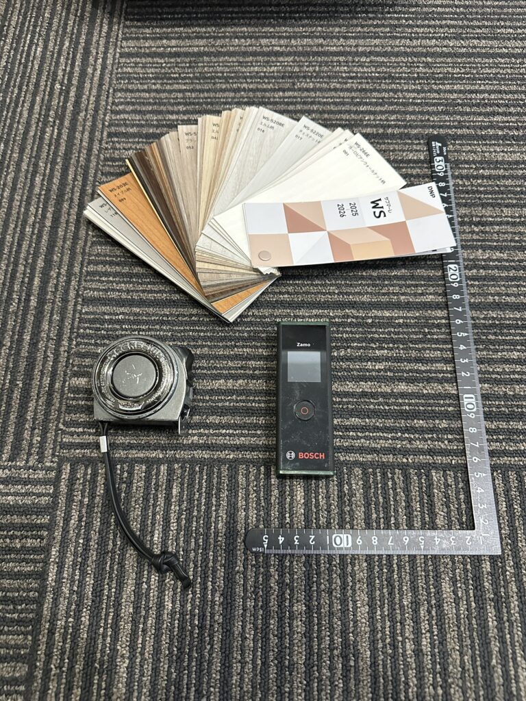 壁から壁までの距離や、天井高、梁下の寸法などを一瞬で正確に測れる頼もしい相棒。